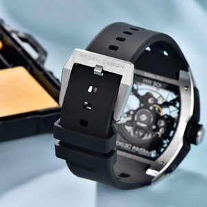 Le bracelet du Birmingham Silver est fabriqué en FKM, un matériau reconnu pour sa résistance et sa légèreté. Son confort exceptionnel offre une sensation unique, rendant ce garde-temps presque imperceptible au poignet.