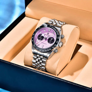 Achetez votre Pagani Design Dash Pink sur notre site web et recevez son emballage. Cette montre est le choix idéal pour ceux qui recherchent qualité et sophistication. Investissez dans la Pagani Design Dash Pink et découvrez l'excellence jusque dans les moindres détails.