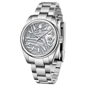 Le mouvement Seiko NH35A est une version améliorée du Seiko NH25, réputé pour sa précision et sa fiabilité exceptionnelles. La Pagani Leaf White, équipée du mouvement NH35A, bénéficie d'une impressionnante réserve de marche d'environ 45 heures.