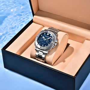 La Pagani Design Numberg Black City Edition est étanche jusqu'à 200 mètres, vous offrant confiance et tranquillité d'esprit lors de vos activités nautiques. La couronne de la Pagani Design Numberg Black City Edition est vissée pour garantir une étanchéité parfaite. Consultez le manuel d'utilisation et de garantie pour plus d'informations.