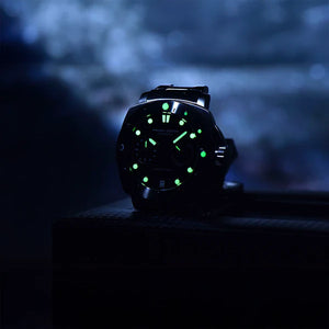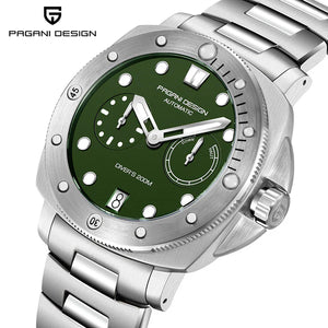 La Pagani Design Numberg Green City Edition est étanche jusqu'à 200 mètres, vous offrant confiance et tranquillité d'esprit lors de vos activités nautiques. La couronne de la Pagani Design Numberg Green City Edition est vissée pour garantir une étanchéité parfaite. Consultez le manuel d'utilisation et de garantie pour plus d'informations.