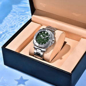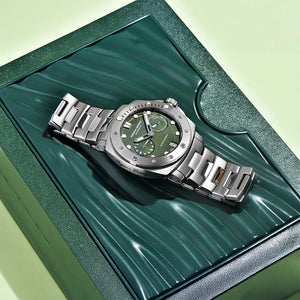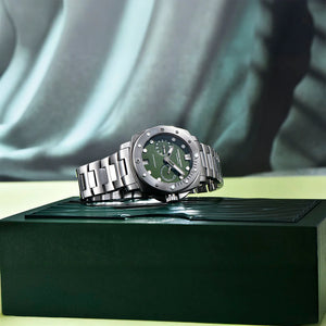 La Pagani Design Numberg Green City Edition est fabriquée en acier inoxydable 316L, un matériau hypoallergénique et hautement résistant à la corrosion, offrant une résistance, une brillance et une durabilité exceptionnelles.
