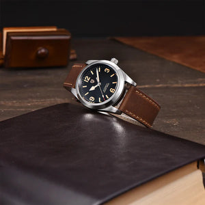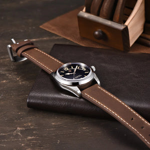 Le bracelet de la Pagani Design Ranger Black Classic Edition est soigneusement confectionné en cuir véritable, alliant résistance et légèreté. Il offre un confort inégalé et la sensation unique d'une montre presque imperceptible au poignet.