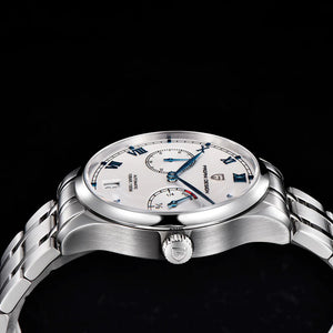 Le mouvement CALC.2C-22 est une version améliorée du CALC.2C-22, reconnu pour ses performances exceptionnelles en termes de précision et de fiabilité. La Pagani Design Roma Silver White équipée du mouvement CALC.2C-22 bénéficie d'une impressionnante réserve de marche d'environ 48 heures.