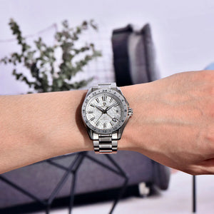 La montre Pagani Design Seeker White est étanche jusqu'à 100 mètres, garantissant ainsi la sécurité lors des activités aquatiques. Elle a été testée dans des conditions extrêmes pour garantir sa résistance à la pression de l'eau.