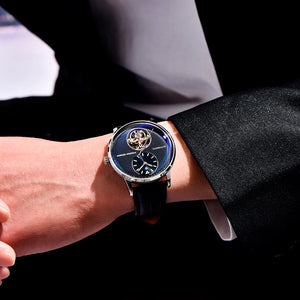 Le bracelet de la Pagani Design Tourbillon Argent Noir est conçu avec soin, alliant la résistance et la légèreté du cuir. Il offre un confort inégalé et la sensation unique d'une montre presque imperceptible au poignet.