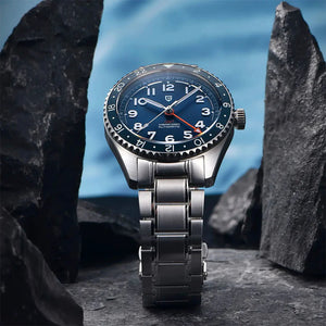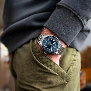 Le bracelet de la Pagani Design Trailblazer Blue est soigneusement confectionné en acier inoxydable 316L, alliant la résistance de l'acier à la légèreté du matériau. Il offre un confort inégalé et la sensation unique d'une montre presque imperceptible au poignet.