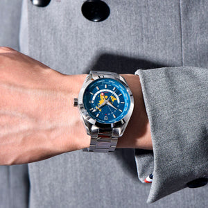La Pagani Design Travel Blue est douce au poignet et sublime. Son bracelet en acier inoxydable offre un confort inégalé et la sensation unique d'une montre presque imperceptible.