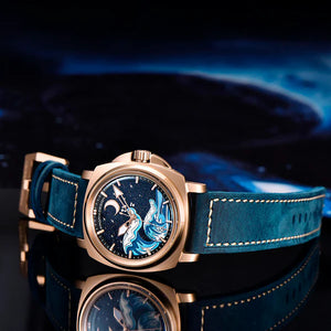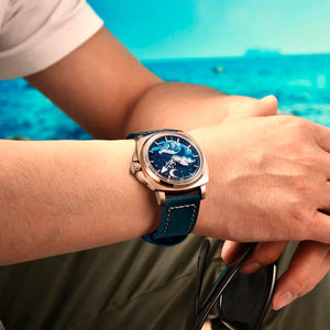 Le mouvement Seiko NH35A est reconnu pour sa précision et sa fiabilité exceptionnelles. La Pagani Design Wave Gold Blue, équipée du mouvement NH35A, offre un fonctionnement fluide et précis.