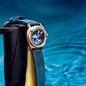 Le bracelet Pagani Design Wave Gold Blue est soigneusement conçu avec des matériaux haut de gamme, alliant la résistance et la légèreté du cuir véritable. Il offre un confort inégalé et la sensation unique d'une montre presque imperceptible au poignet.