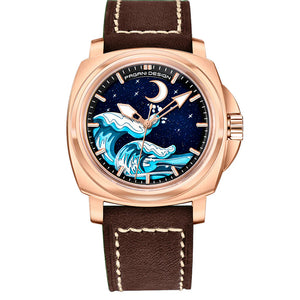Le mouvement Seiko NH35A est reconnu pour ses performances exceptionnelles en termes de précision et de fiabilité. La Pagani Design Wave Gold Brown équipée de ce mouvement offre un fonctionnement fluide et précis.