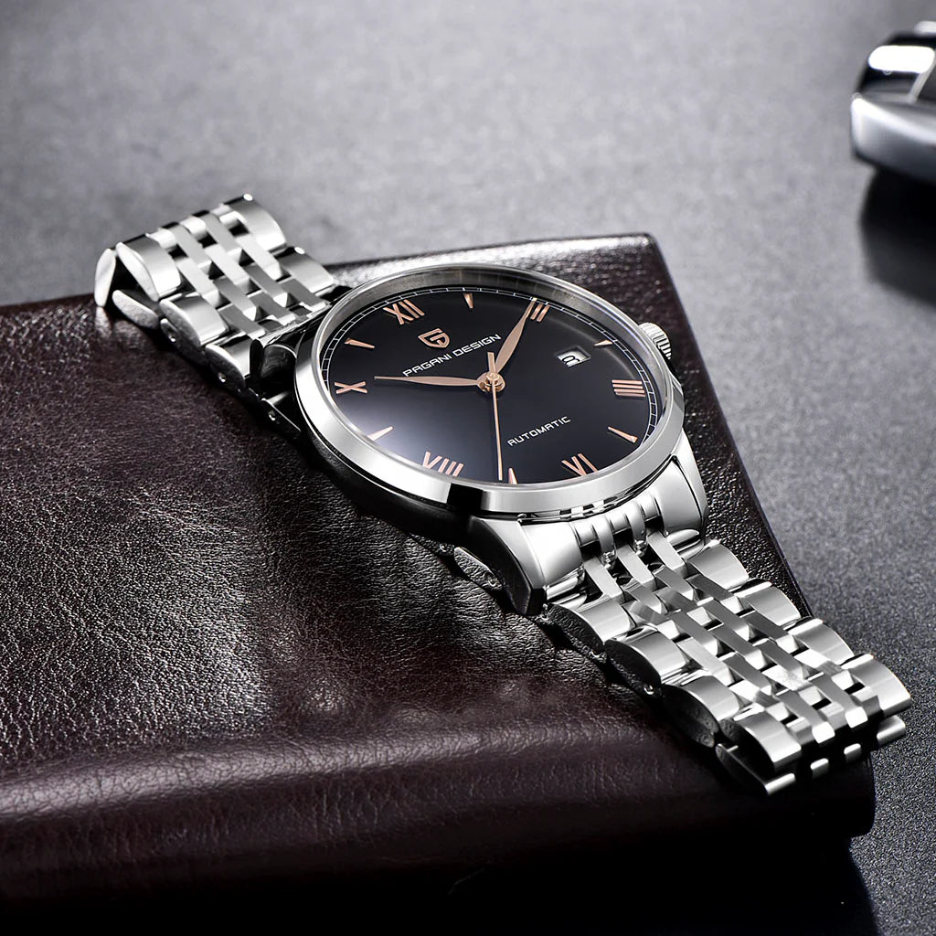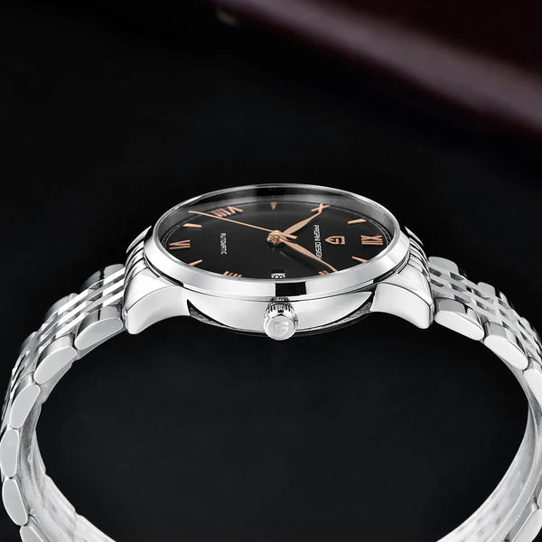 Le bracelet de la Pagani Design Caen Black City Edition est conçu avec soin à partir de matériaux haut de gamme, offrant toute la résistance et l'élégance de l'acier inoxydable. Il offre un confort inégalé et la sensation unique d'une montre presque imperceptible au poignet.