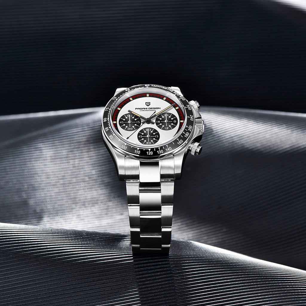 Le mouvement Seiko VK63 est reconnu pour sa précision et sa fiabilité exceptionnelles. La Pagani Design Montpellier White City Edition, équipée du mouvement VK63, offre un chronographe fluide et précis.