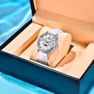 Dotée d'un verre saphir synthétique, cette montre pour femme garantit une résistance aux rayures et une transparence irréprochable, conservant son éclat et son élégance au fil du temps.
