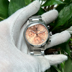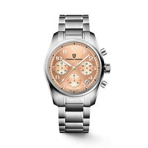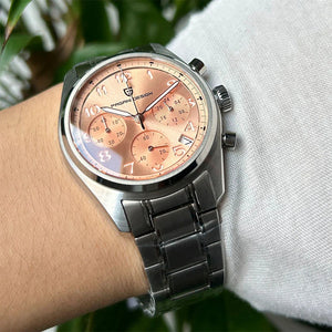 Le mouvement Seiko VK63 est reconnu pour ses performances exceptionnelles en termes de précision et de fiabilité. La Pagani Design Dresden Or Rose, équipée du mouvement VK63, offre un chronographe fluide et précis.