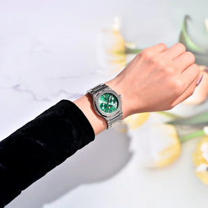 Le bracelet Pagani Design Le Mans Green est conçu avec soin à partir de matériaux haut de gamme, alliant la résistance et la légèreté de l'acier inoxydable 316L. Il offre un confort inégalé et la sensation unique d'une montre presque imperceptible au poignet.