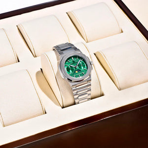 La Pagani Design Le Mans Green est fabriquée en acier inoxydable 316L, un matériau hypoallergénique et hautement résistant à la corrosion, offrant une résistance, une brillance et une durabilité exceptionnelles.