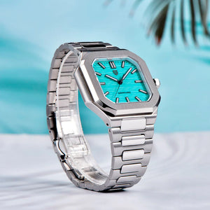 Achetez votre Pagani Design Square Turquoise sur notre site web et recevez son emballage. Cette montre est le choix idéal pour ceux qui recherchent qualité et raffinement. Investissez dans la Pagani Design Square Turquoise et découvrez l'excellence jusque dans les moindres détails.