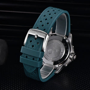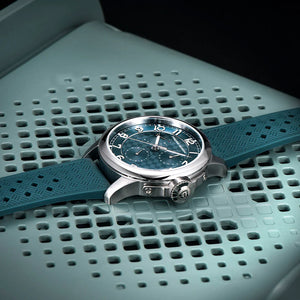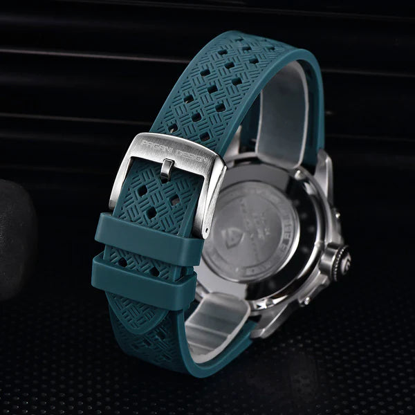 Le bracelet Pagani Design Flow Blue est soigneusement conçu avec des matériaux haut de gamme, alliant la résistance et la légèreté du caoutchouc. Il offre un confort inégalé et la sensation unique d'une montre presque imperceptible au poignet.