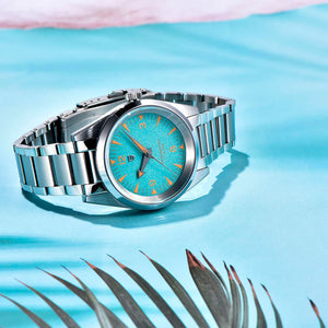 Achetez votre Pagani Design Fusion Turquoise sur notre site web et recevez son emballage. Cette montre est le choix idéal pour ceux qui recherchent qualité et sophistication. Investissez dans la Pagani Design Fusion Turquoise et découvrez l'excellence jusque dans les moindres détails.