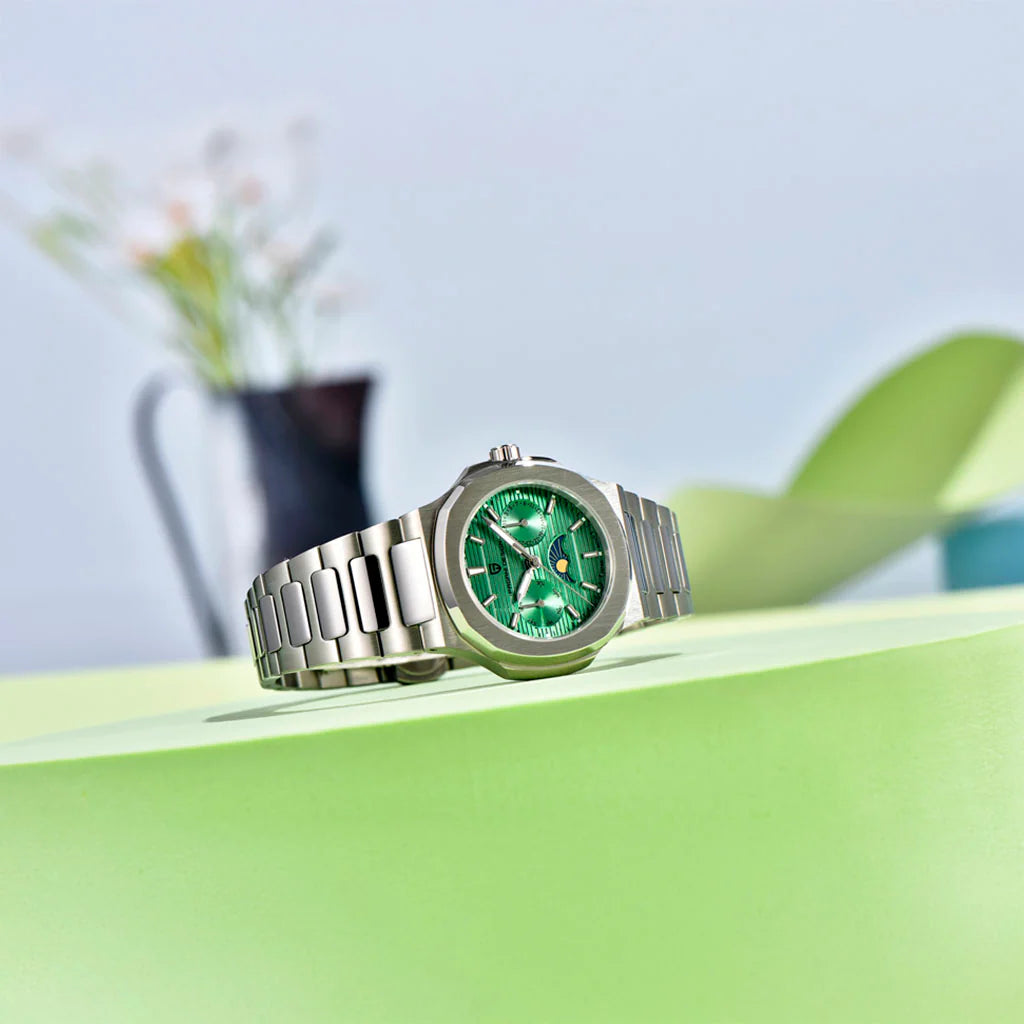 La Pagani Design Le Mans Green est fabriquée en acier inoxydable 316L, un matériau hypoallergénique et hautement résistant à la corrosion, offrant une résistance, une brillance et une durabilité exceptionnelles.