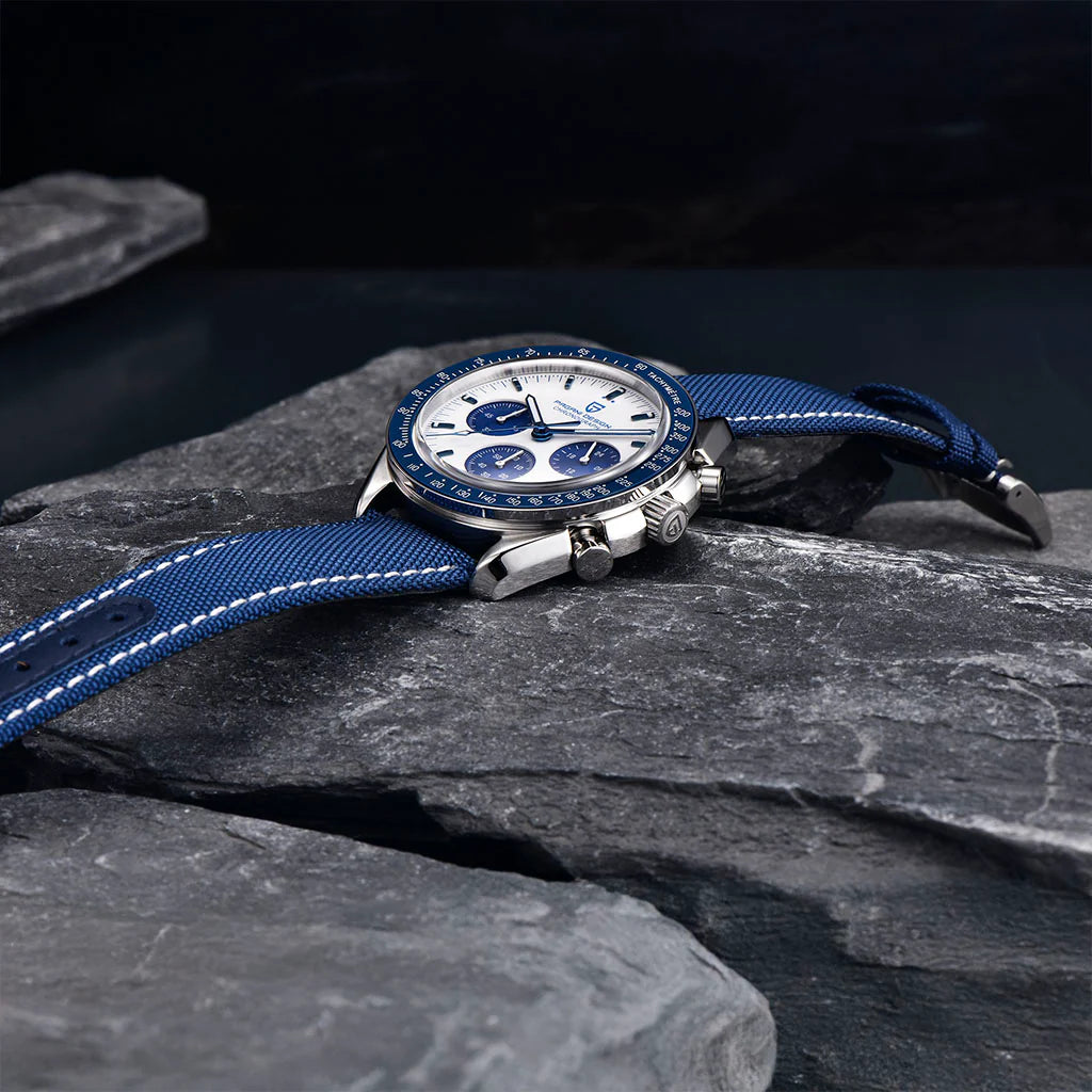 Le mouvement Seiko VK63 est reconnu pour sa précision et sa fiabilité exceptionnelles. La Pagani Design Lorenzo Blue Classic Edition, équipée du mouvement VK63, offre un chronographe fluide et précis.