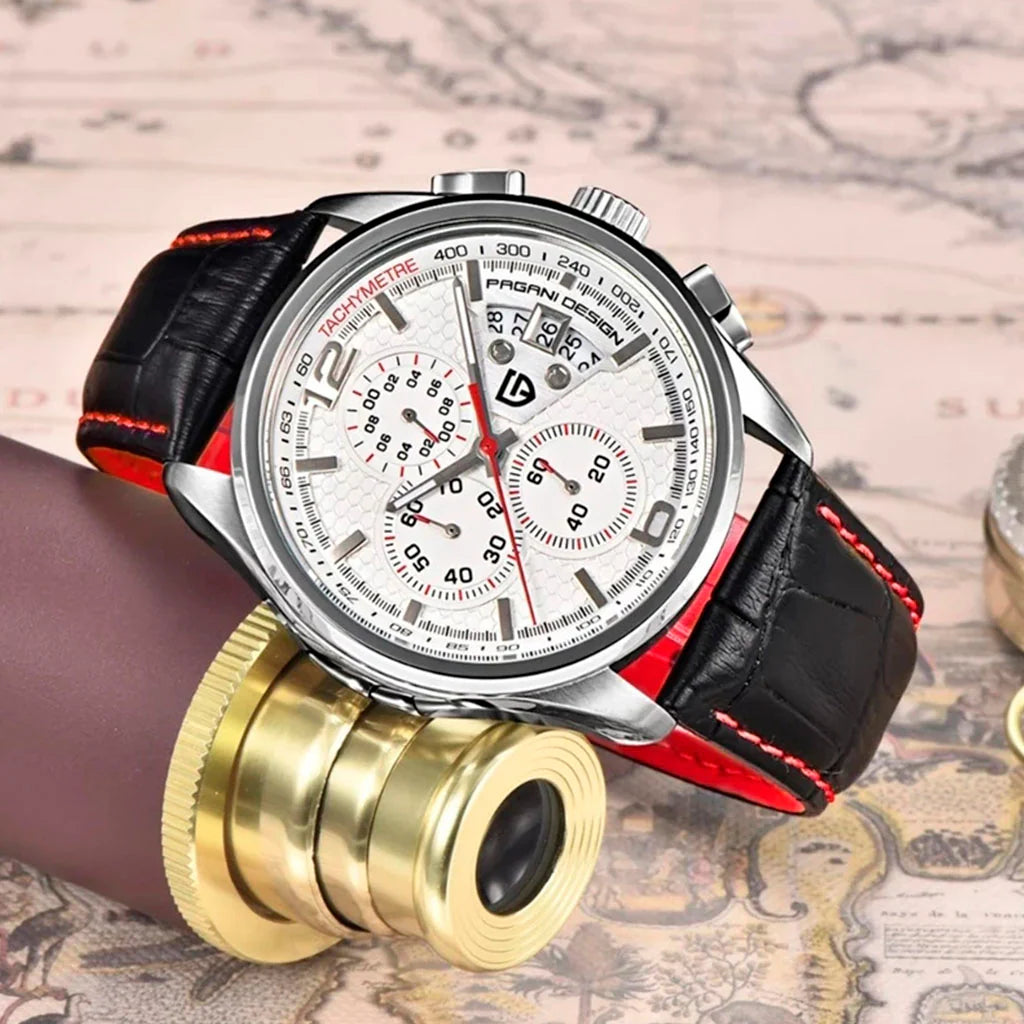 Le modèle Pagani Design Pace White est doté d'un chronographe et d'un affichage de la date avec toute la précision d'un modèle à quartz. Il offre également toute la qualité et la beauté d'un modèle Pagani Design.