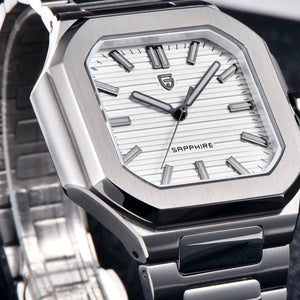 Le mouvement Seiko VH31 est un mouvement à quartz de haute précision reconnu pour sa précision et sa fiabilité exceptionnelles. La Pagani Design Square White, équipée du mouvement VH31, offre une précision et une fiabilité exceptionnelles.