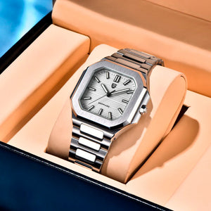 Achetez votre Pagani Design Square White sur notre site web et recevez son emballage. Cette montre est le choix idéal pour ceux qui recherchent qualité et raffinement. Investissez dans la Pagani Design Square White et découvrez l'excellence jusque dans les moindres détails.