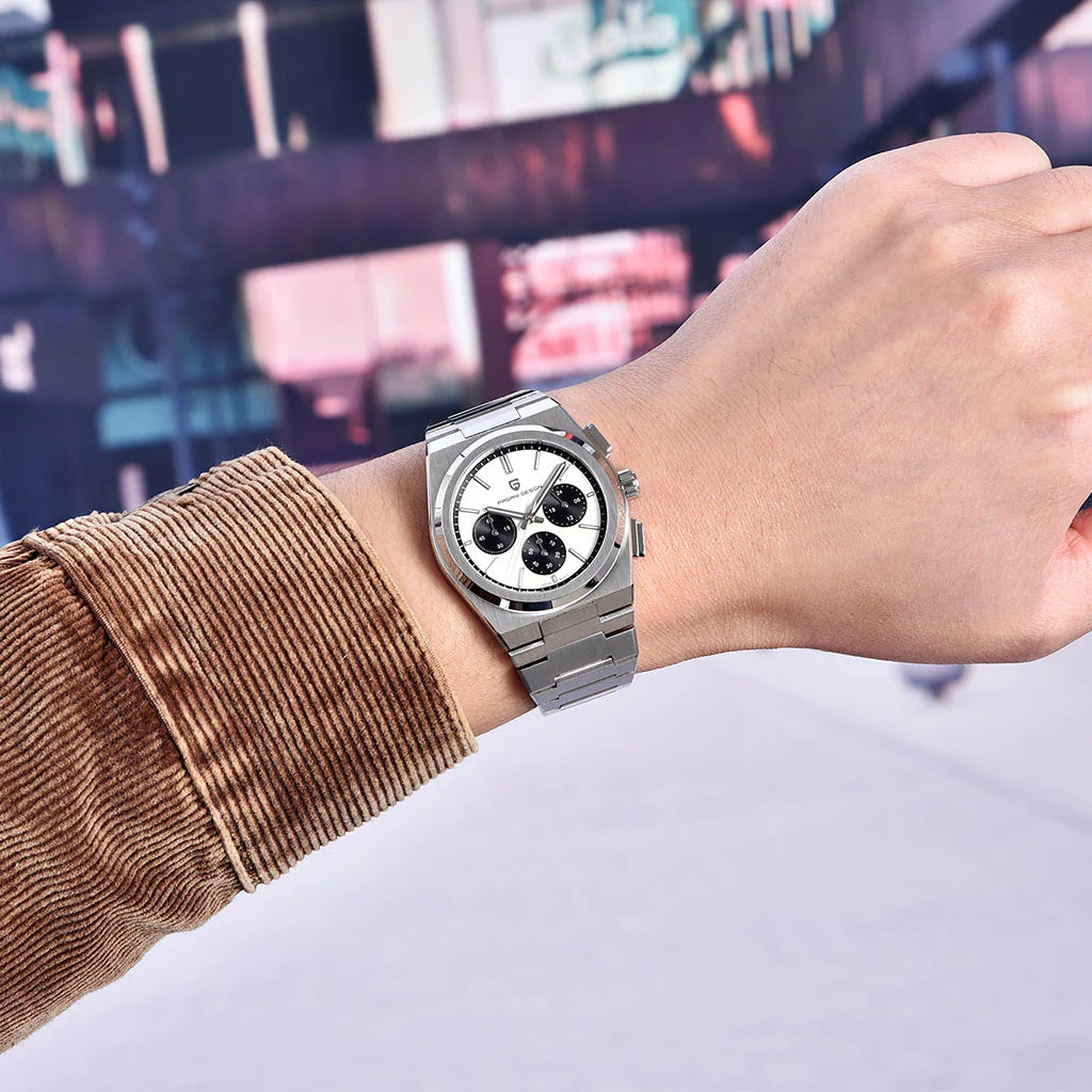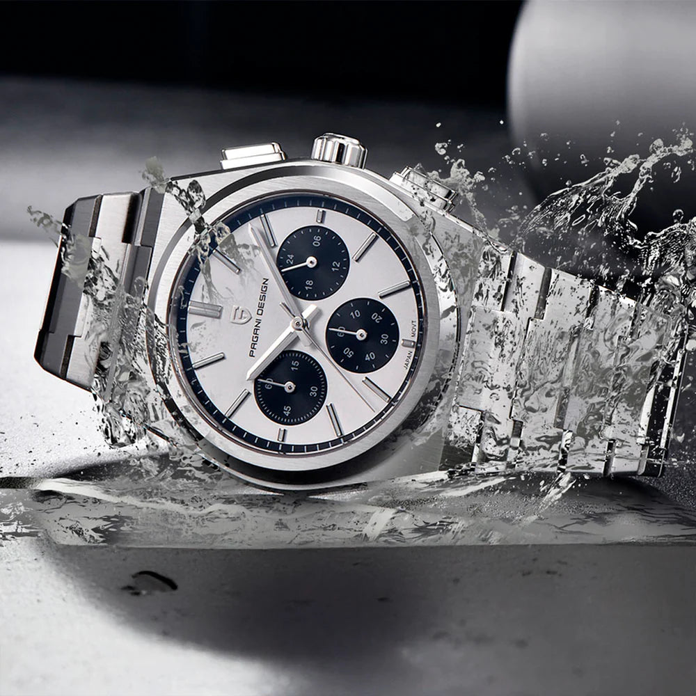 Le mouvement Seiko VK63 est reconnu pour ses performances exceptionnelles en termes de précision et de fiabilité. La Pagani Design Tide White, équipée du mouvement VK63, offre un chronographe fluide et précis.