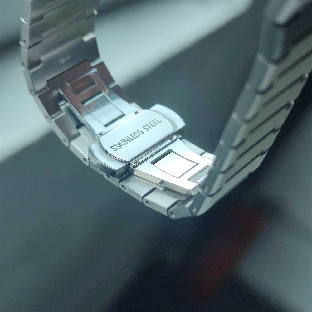 Le bracelet Pagani Design Tide White est conçu avec soin à partir de matériaux haut de gamme, alliant la résistance et la légèreté de l'acier inoxydable 316L. Il offre un confort inégalé et la sensation unique d'une montre presque imperceptible au poignet.