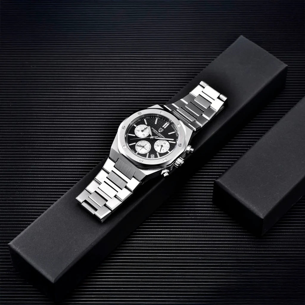 Achetez votre Pagani Design Track Black sur notre site web et recevez votre coffret. Cette montre est le choix idéal pour ceux qui recherchent qualité et raffinement. Investissez dans la Pagani Design Track Black et découvrez l'excellence jusque dans les moindres détails.