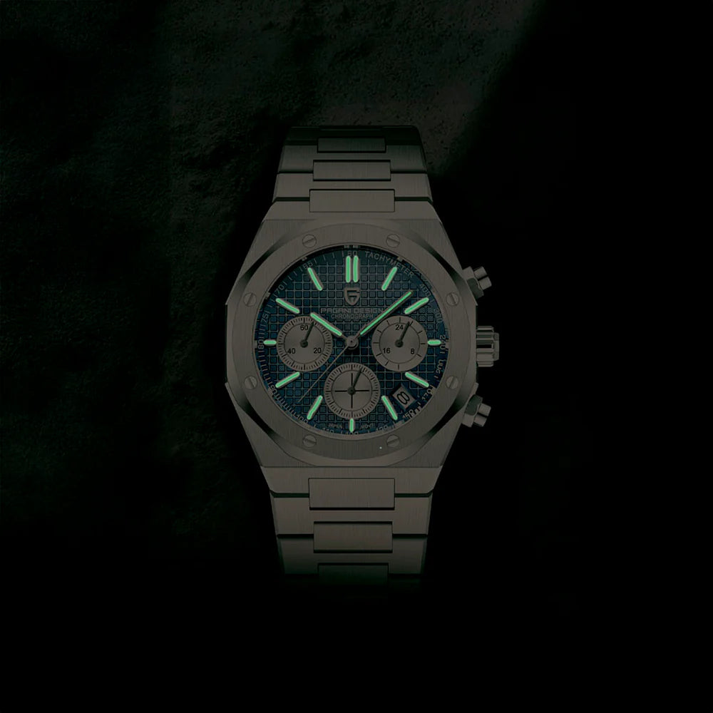 Le mouvement Seiko VK63 est reconnu pour ses performances exceptionnelles en termes de précision et de fiabilité. La Pagani Design Track Blue, équipée du mouvement VK63, offre un chronographe fluide et précis.