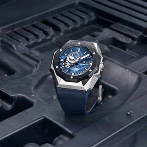 Le mouvement Seiko NH39 est une version améliorée du Seiko NH39, réputé pour sa précision et sa fiabilité exceptionnelles. La Pagani Design Armored Dark Blue, équipée du mouvement NH39, bénéficie d'une impressionnante réserve de marche d'environ 45 heures.