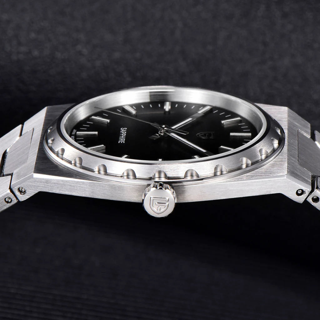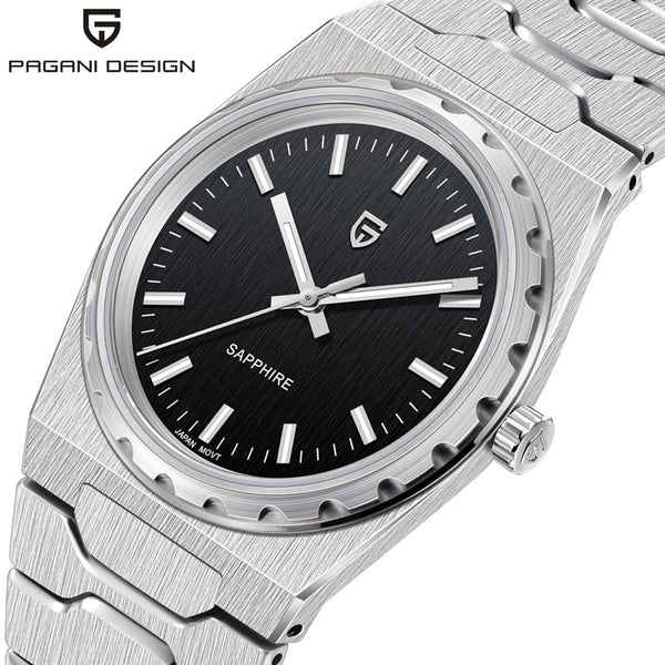 Le mouvement Seiko TMI VJ21 est un mouvement à quartz de haute précision reconnu pour sa précision et sa fiabilité exceptionnelles. La Pagani Design Drift Silver Black, équipée du mouvement TMI VJ21, offre une précision et une fiabilité exceptionnelles.