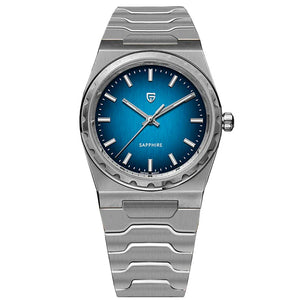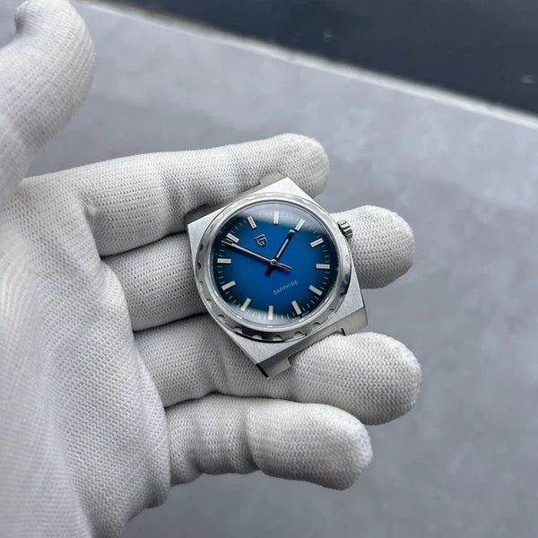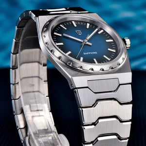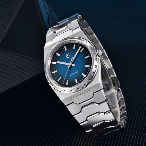 Le mouvement Seiko TMI VJ21 est un mouvement à quartz de haute précision reconnu pour sa précision et sa fiabilité exceptionnelles. La Pagani Design Drift Silver Blue, équipée du mouvement TMI VJ21, offre une précision et une fiabilité exceptionnelles.