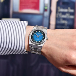 Le bracelet Pagani Design Drift Silver Blue est conçu avec soin à partir de matériaux haut de gamme, alliant l'élégance et la résistance de l'acier 316L. Il offre un confort inégalé et la sensation unique d'une montre presque imperceptible au poignet.