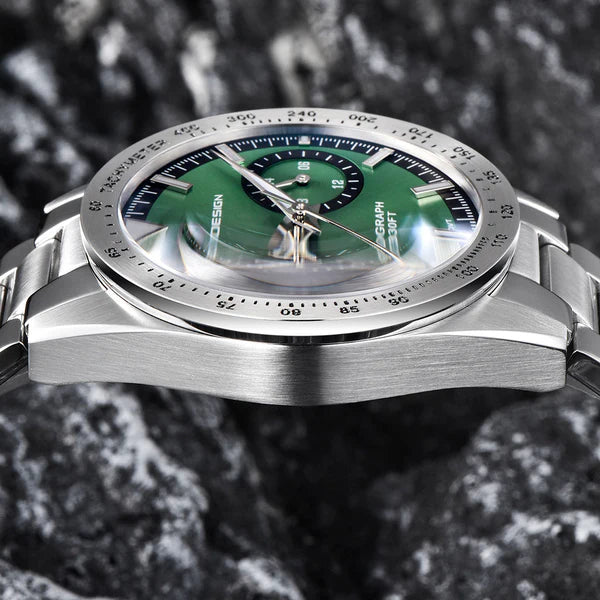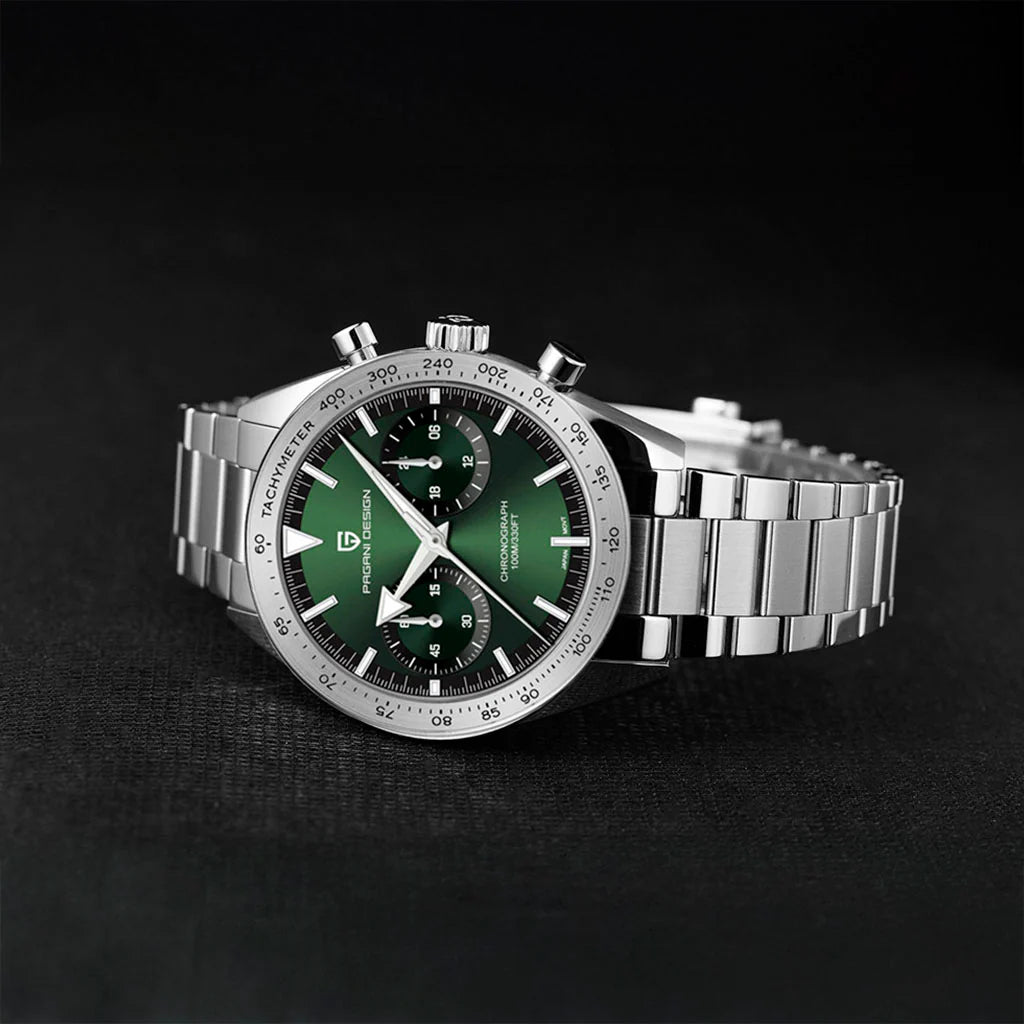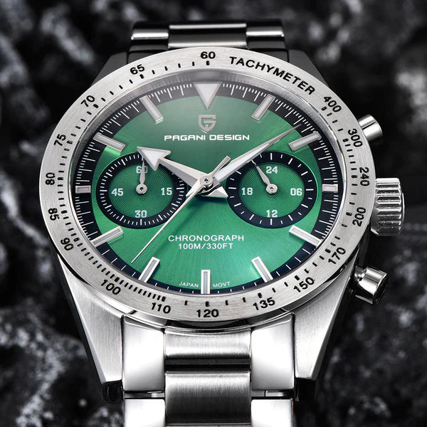 Le mouvement Seiko VK64 est reconnu pour ses performances exceptionnelles en termes de précision et de fiabilité. La Pagani Design Drive Green, équipée du mouvement VK64, offre un chronographe fluide et précis.
