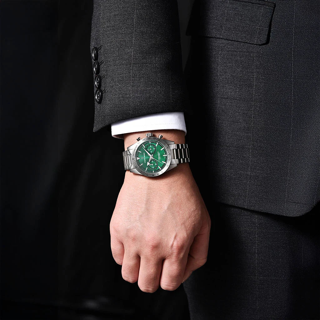 La Pagani Design Drive Green est fabriquée en acier inoxydable 316L, un matériau hypoallergénique et hautement résistant à la corrosion, offrant une résistance, une brillance et une durabilité exceptionnelles.