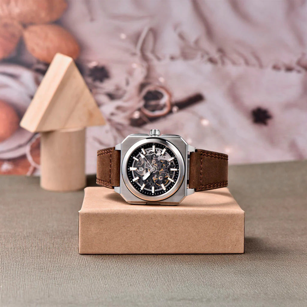 Le bracelet Pagani Design Factory Noir Marron est soigneusement conçu avec des matériaux haut de gamme, offrant toute la résistance et la légèreté du cuir. Il offre un confort inégalé et la sensation unique d'une montre presque imperceptible au poignet.