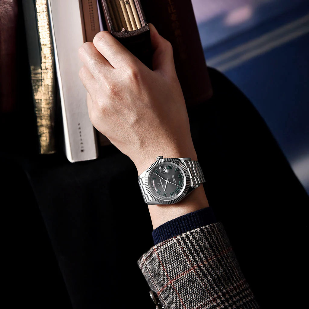Achetez votre Pagani Design London Silver Gray sur notre site web et recevez votre coffret. Cette montre est le choix idéal pour ceux qui recherchent qualité et sophistication. Investissez dans la Pagani Design London Silver Gray et découvrez l'excellence jusque dans les moindres détails.