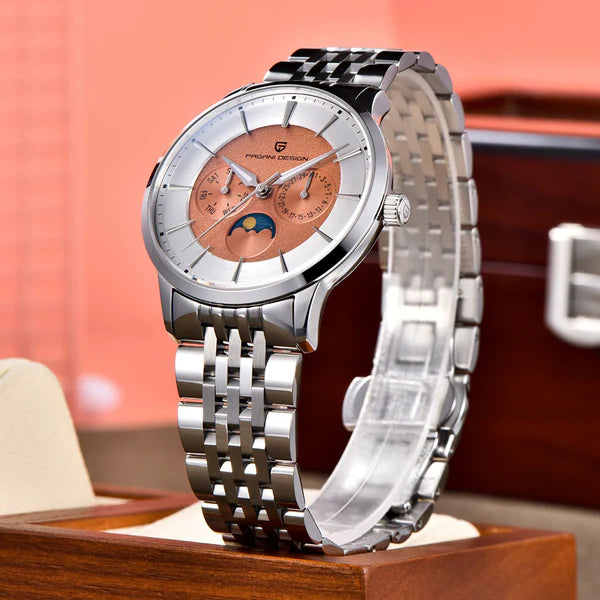Achetez votre Pagani Design Martin Orange sur notre site web et recevez son emballage. Cette montre est le choix idéal pour ceux qui recherchent qualité et sophistication. Investissez dans la Pagani Design Martin Orange et découvrez l'excellence jusque dans les moindres détails.