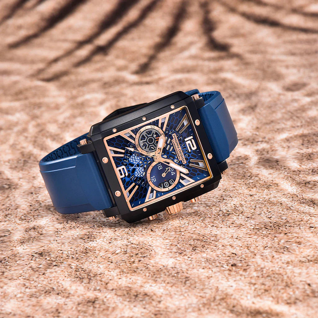 Achetez votre Pagani Design Monaco Gold Blue sur notre site web et recevez notre emballage spécial. Cette montre est le choix idéal pour ceux qui recherchent qualité et sophistication. Investissez dans la Pagani Design Monaco Gold Blue et découvrez l'excellence jusque dans les moindres détails.