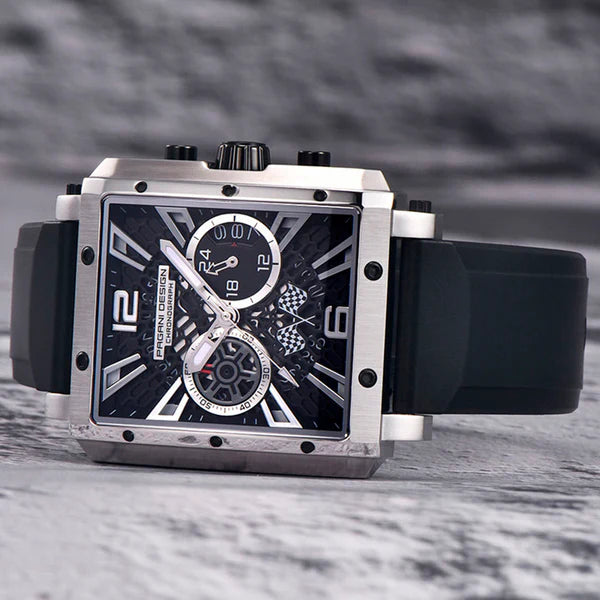 Achetez votre Pagani Design Monaco Silver Black sur notre site web et recevez notre emballage spécial. Cette montre est le choix idéal pour ceux qui recherchent qualité et raffinement. Investissez dans la Pagani Design Monaco Silver Black et découvrez l'excellence jusque dans les moindres détails.