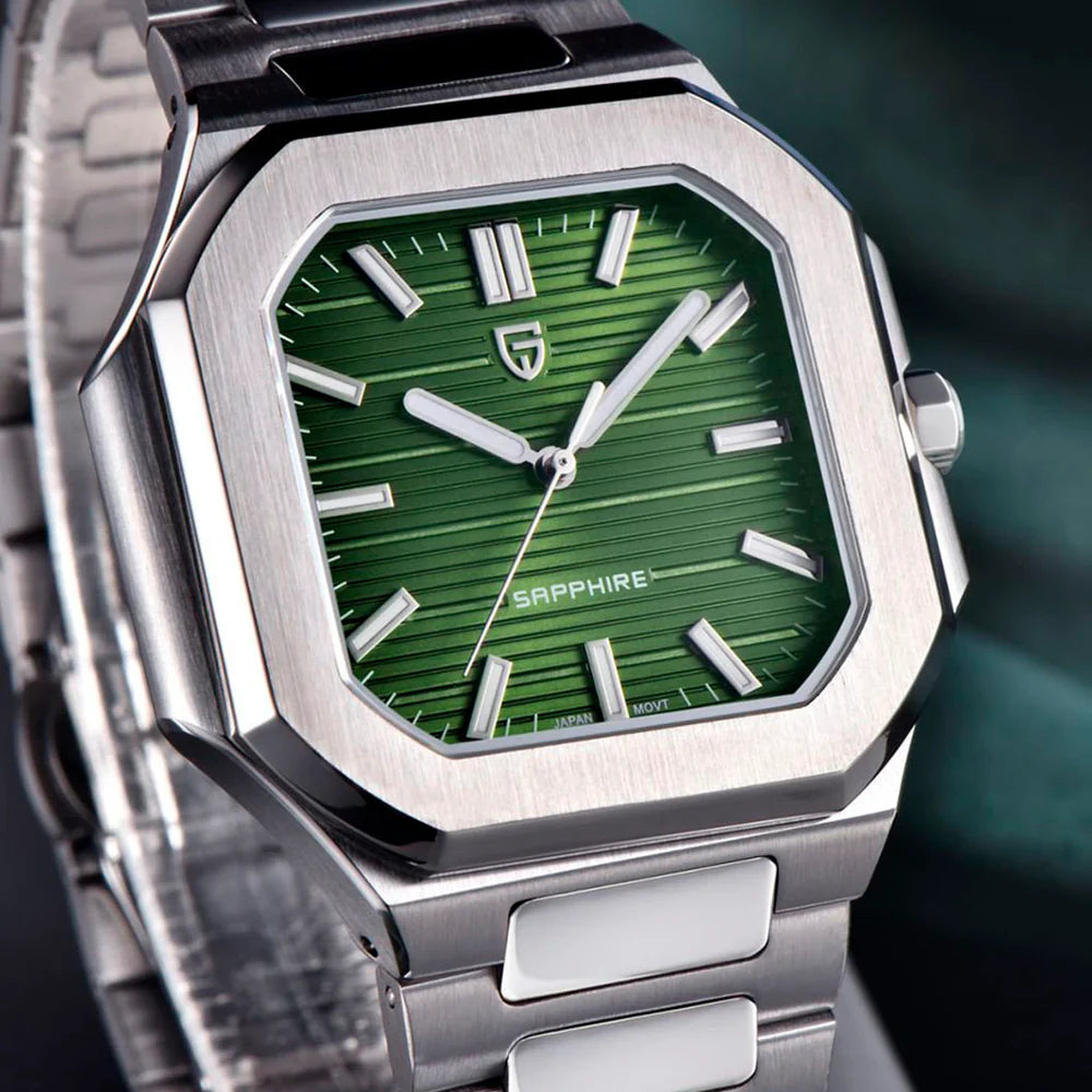 Le mouvement Seiko VH31 est un mouvement à quartz de haute précision reconnu pour sa précision et sa fiabilité exceptionnelles. La Pagani Design Square Green, équipée du mouvement VH31, offre une précision et une fiabilité exceptionnelles.