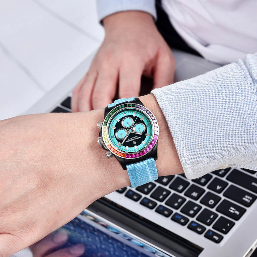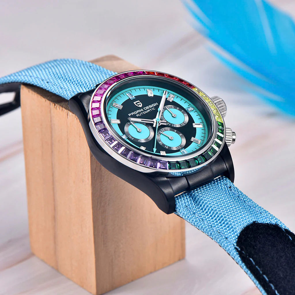 Achetez votre Pagani Design Riad Blue sur notre site web et recevez son emballage. Cette montre est le choix idéal pour ceux qui recherchent qualité et sophistication. Investissez dans la Pagani Design Riad Blue et découvrez l'excellence jusque dans les moindres détails.