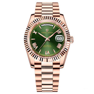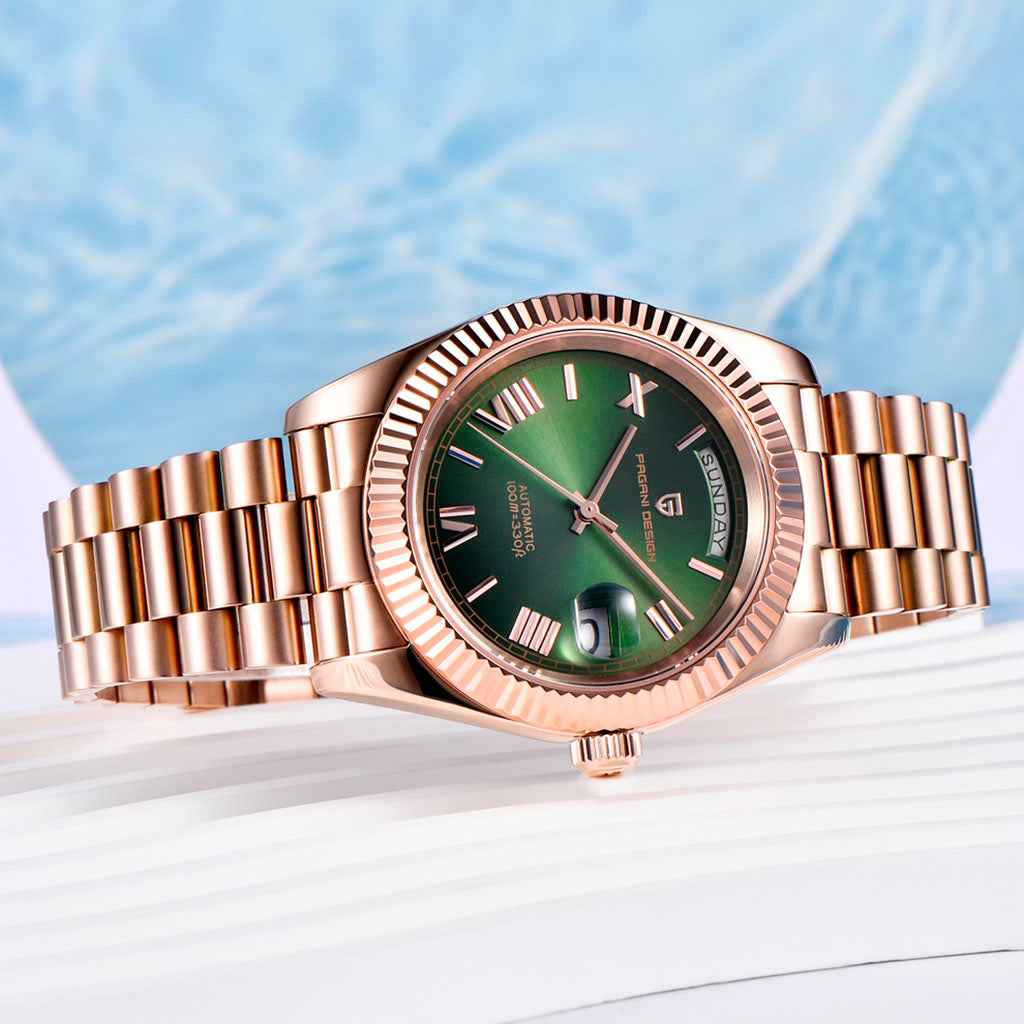 Achetez votre Pagani Design London Or Rose Vert sur notre site web et recevez votre coffret. Cette montre est le choix idéal pour ceux qui recherchent qualité et sophistication. Investissez dans la Pagani Design London Or Rose Vert et découvrez l'excellence jusque dans les moindres détails.