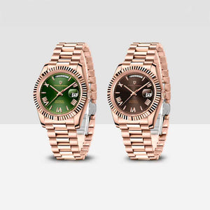 Le mouvement Seiko NH35A est une version améliorée du Seiko NH25, réputé pour sa précision et sa fiabilité exceptionnelles. La Pagani London Rose Gold Green, équipée du mouvement NH35A, bénéficie d'une impressionnante réserve de marche d'environ 45 heures.