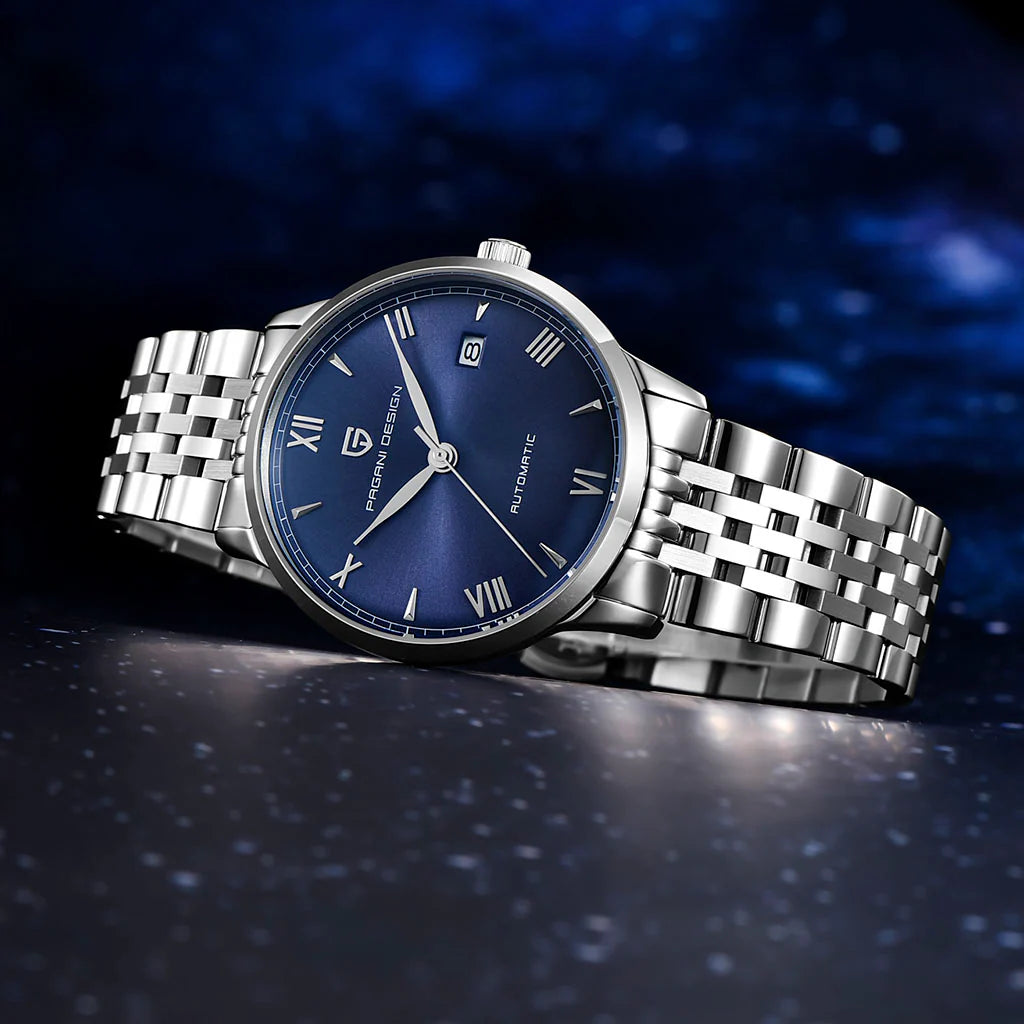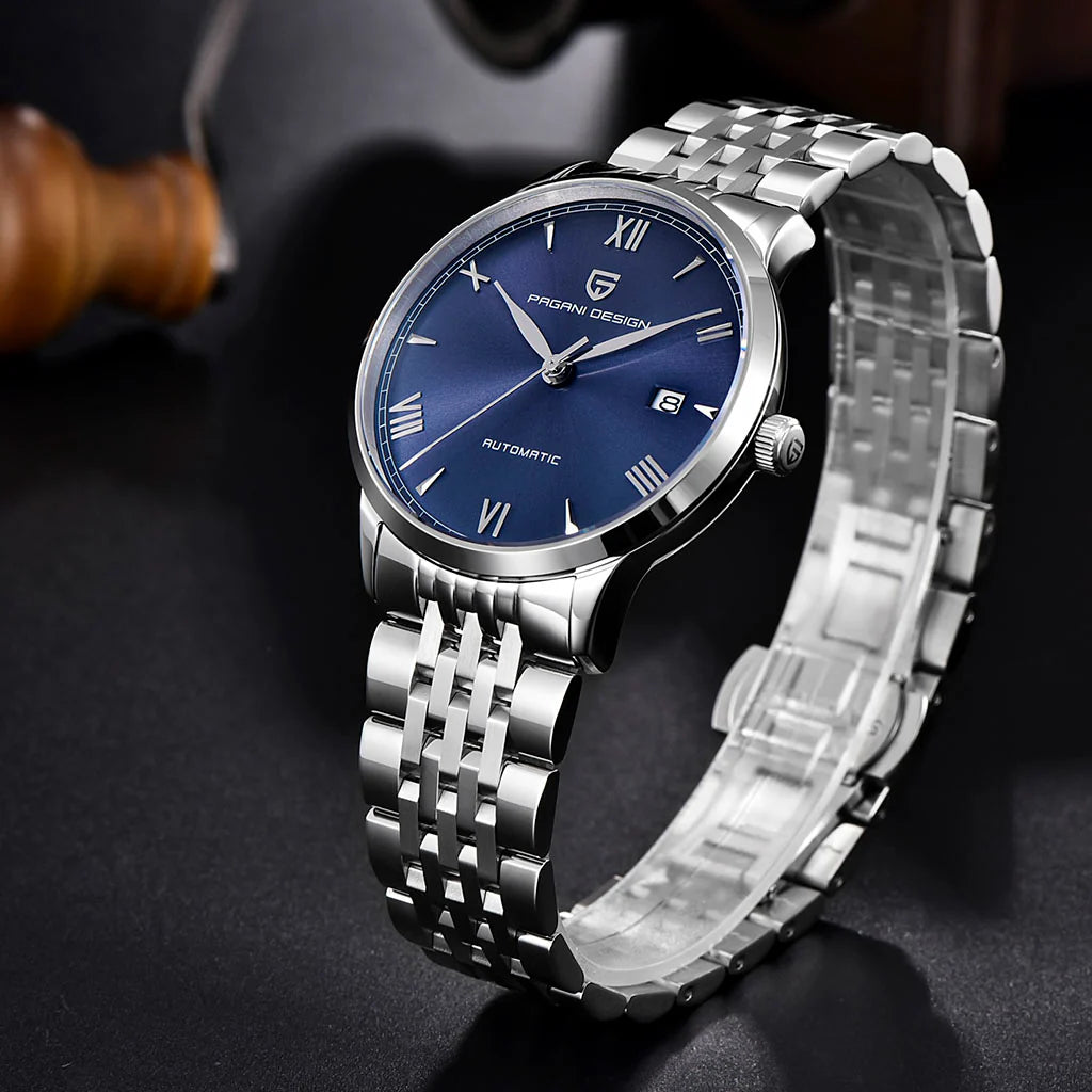 Le bracelet de la Pagani Design Caen Blue City Edition est conçu avec soin à partir de matériaux haut de gamme, offrant toute la résistance et l'élégance de l'acier inoxydable. Il offre un confort inégalé et la sensation unique d'une montre presque imperceptible au poignet.
