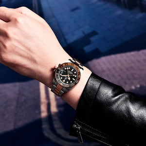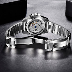 La montre Pagani Design Pantheon Gold est étanche jusqu'à 100 mètres, vous offrant confiance et tranquillité d'esprit lors de vos activités aquatiques. La couronne de la Pagani Design Pantheon Gold est vissée pour une étanchéité parfaite. Consultez le manuel d'utilisation et de garantie pour plus d'informations.